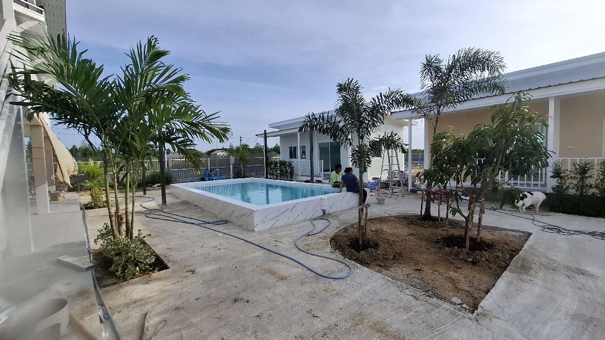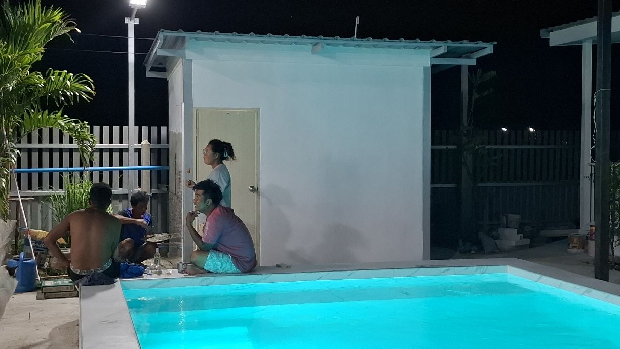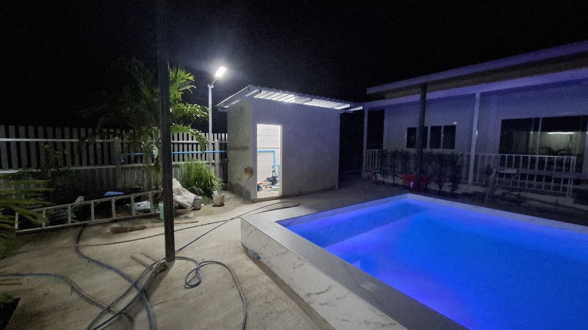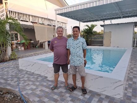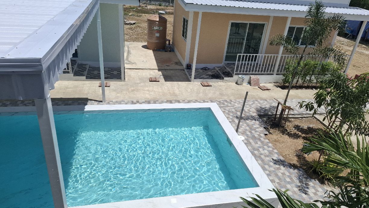 Mittlerweile (15.06.2025) sind die Gästehäuser fertig, abgenommen und bezahlt. Die Wasserversorgung dieser wird durch einen 2000 Liter Pufferspeicher mit Konstant Druckpumpe gesichert. Nachträglich bekommt jedes Gästehaus noch 2 Klimaanlagen, 1 Duschtrennwand und einen Wlan-Router. Die Inneneinrichtung wird Anfang nächsten Monats ausgesucht und geliefert, sobald alle Fliesenlegerarbeiten auf dem Gelände abgeschlossen sind.