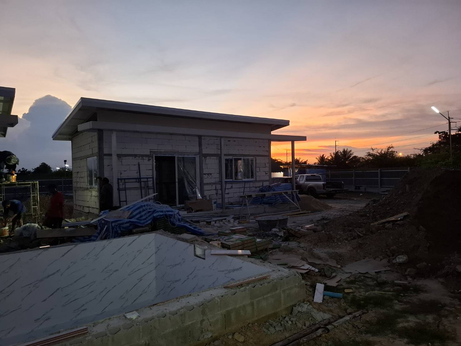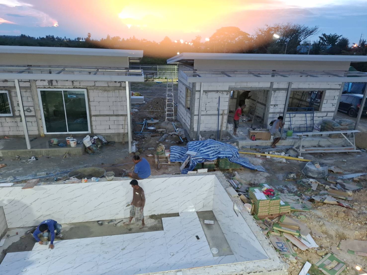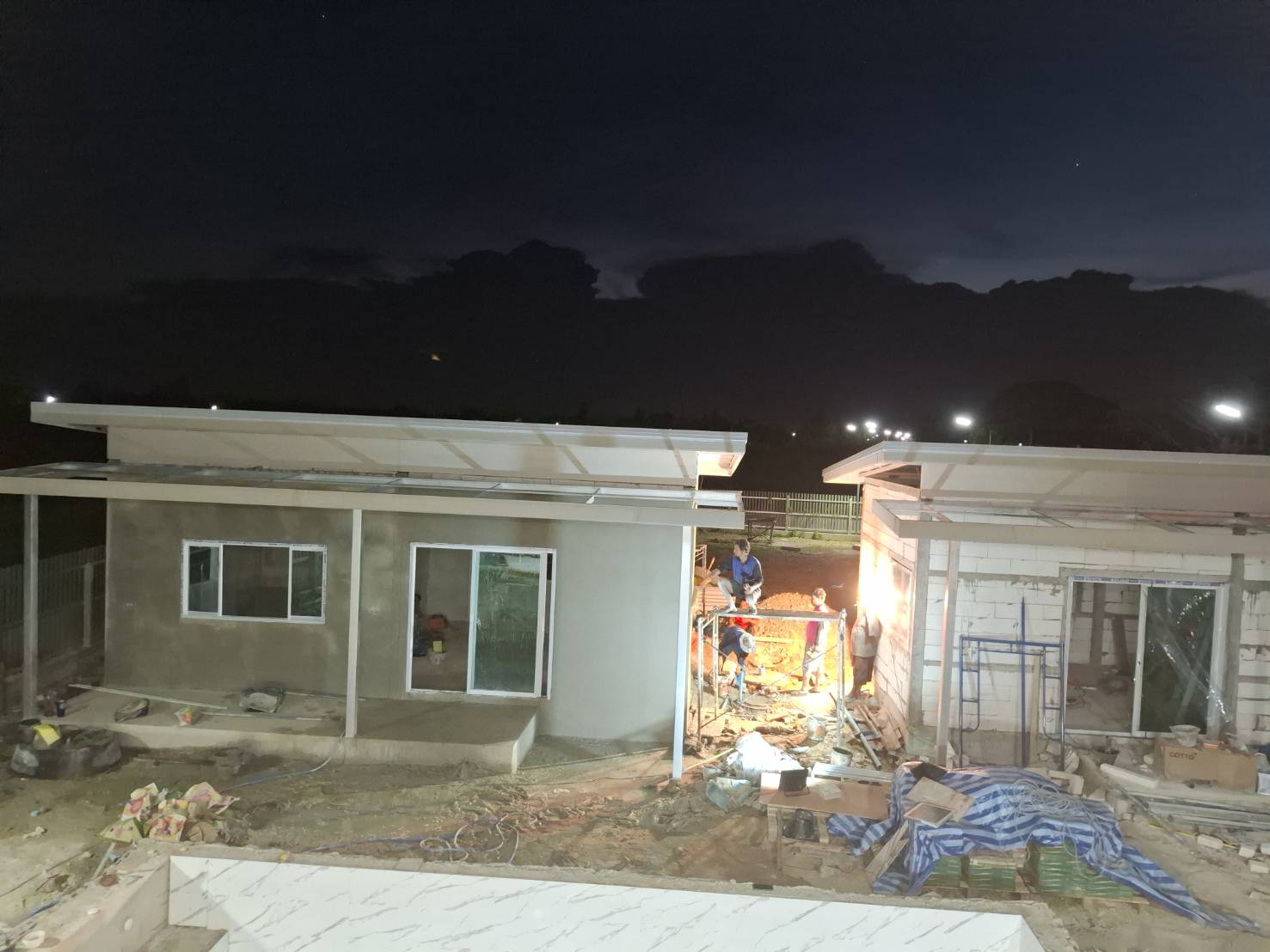Mittlerweile (15.06.2025) sind die Gästehäuser fertig, abgenommen und bezahlt. Die Wasserversorgung dieser wird durch einen 2000 Liter Pufferspeicher mit Konstant Druckpumpe gesichert. Nachträglich bekommt jedes Gästehaus noch 2 Klimaanlagen, 1 Duschtrennwand und einen Wlan-Router. Die Inneneinrichtung wird Anfang nächsten Monats ausgesucht und geliefert, sobald alle Fliesenlegerarbeiten auf dem Gelände abgeschlossen sind.