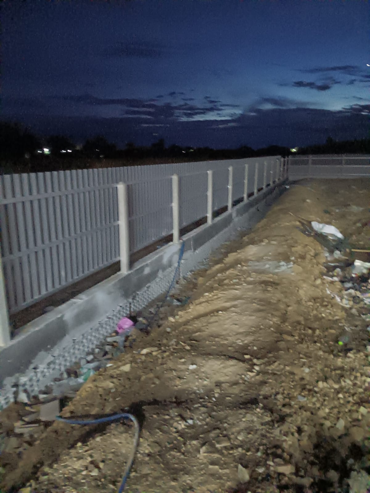 Die Querverstrebungen des Zauns wurden angebracht und am Montag soll der Zaun fertig sein. Der Energieversorger wollte noch eine extra Vorsicherung für den großen Hausanschluß 30KW … auch diese wurde sowie eine stärkere Zuleitung und eine LED Beleuchtung unten installiert.