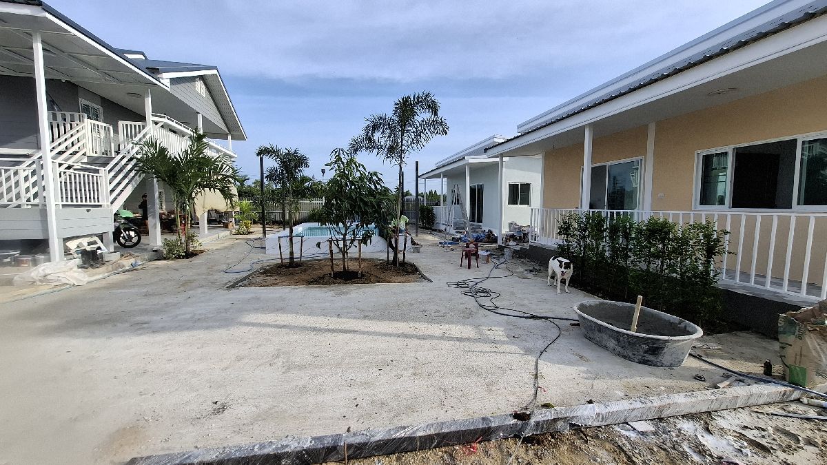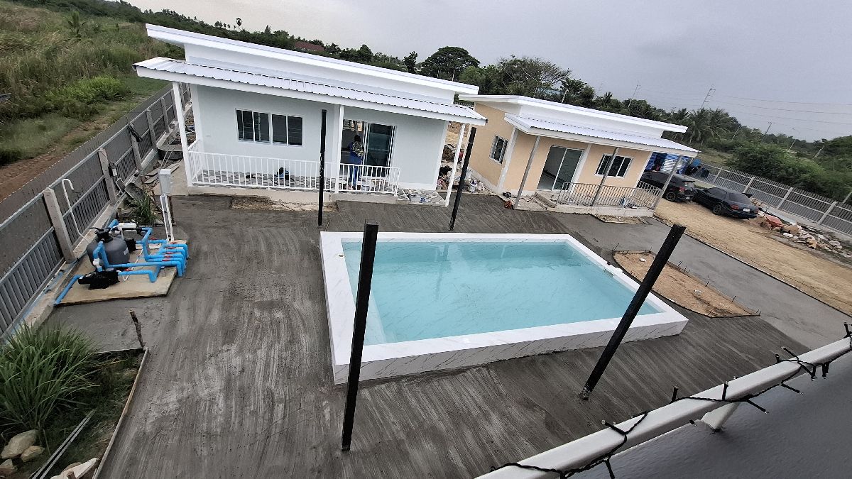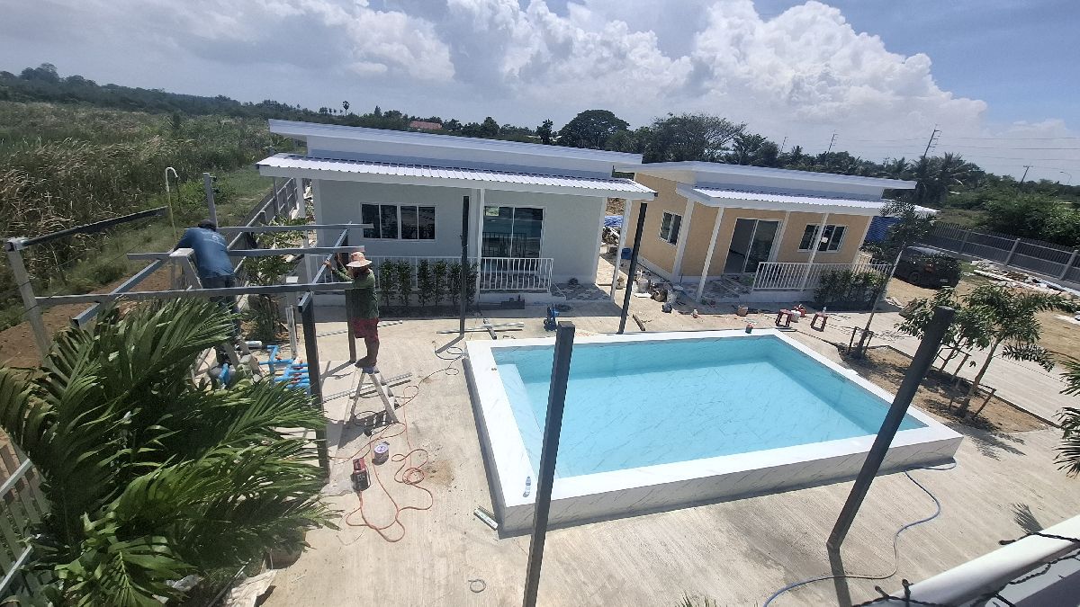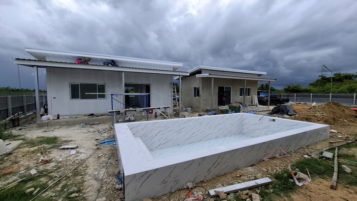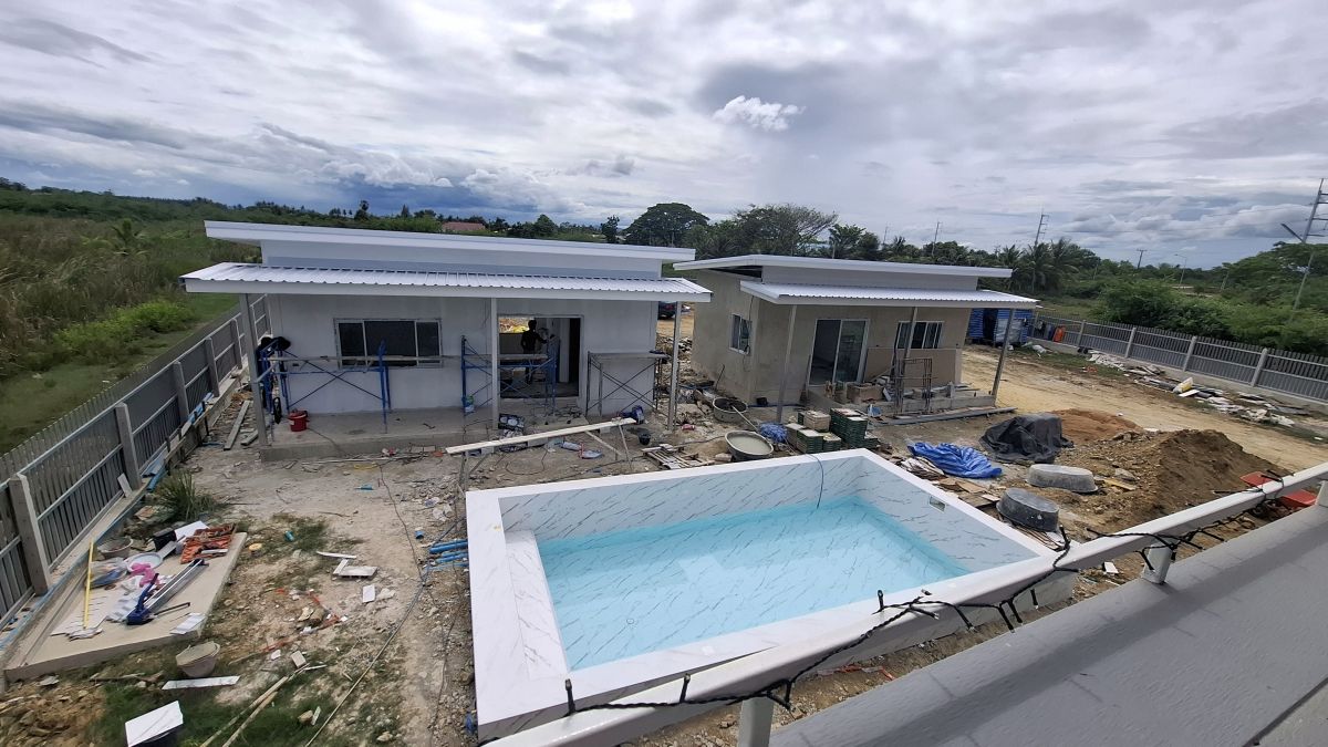 Mittlerweile (15.06.2025) sind die Gästehäuser fertig, abgenommen und bezahlt. Die Wasserversorgung dieser wird durch einen 2000 Liter Pufferspeicher mit Konstant Druckpumpe gesichert. Nachträglich bekommt jedes Gästehaus noch 2 Klimaanlagen, 1 Duschtrennwand und einen Wlan-Router. Die Inneneinrichtung wird Anfang nächsten Monats ausgesucht und geliefert, sobald alle Fliesenlegerarbeiten auf dem Gelände abgeschlossen sind.
