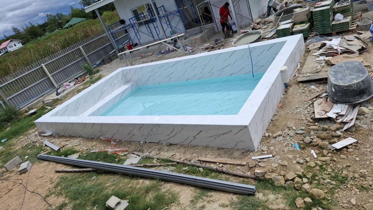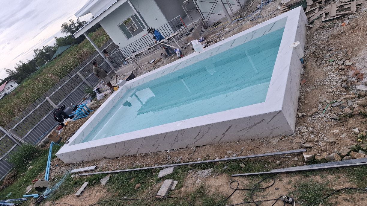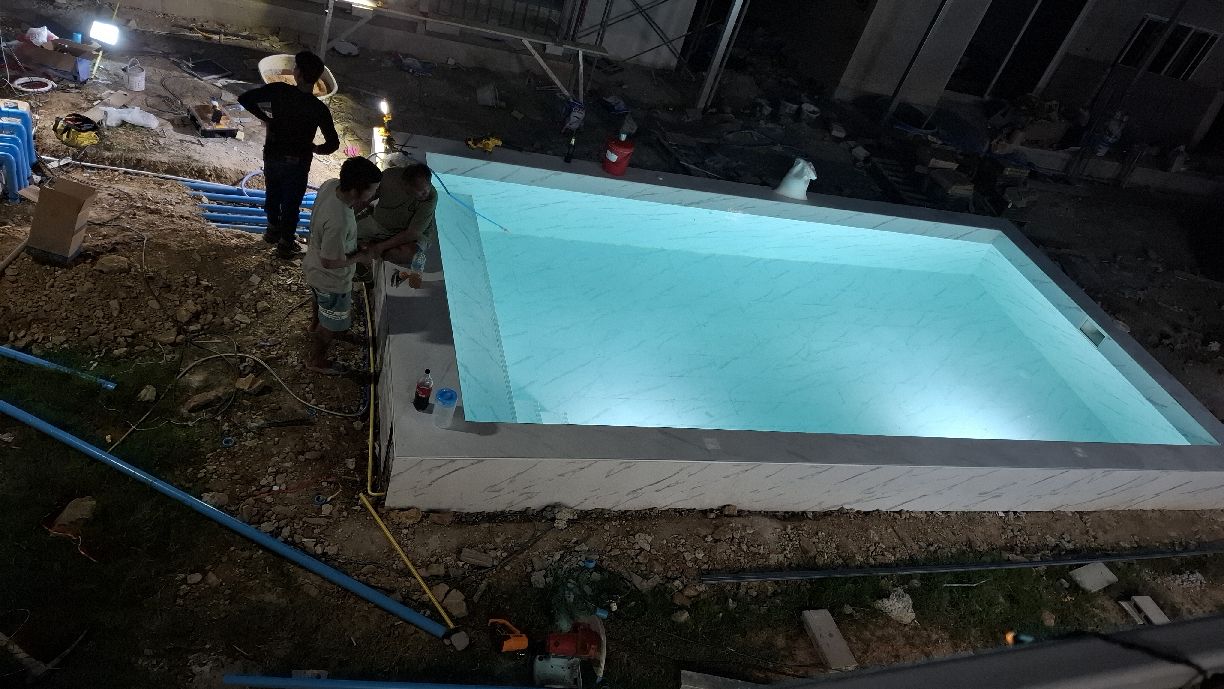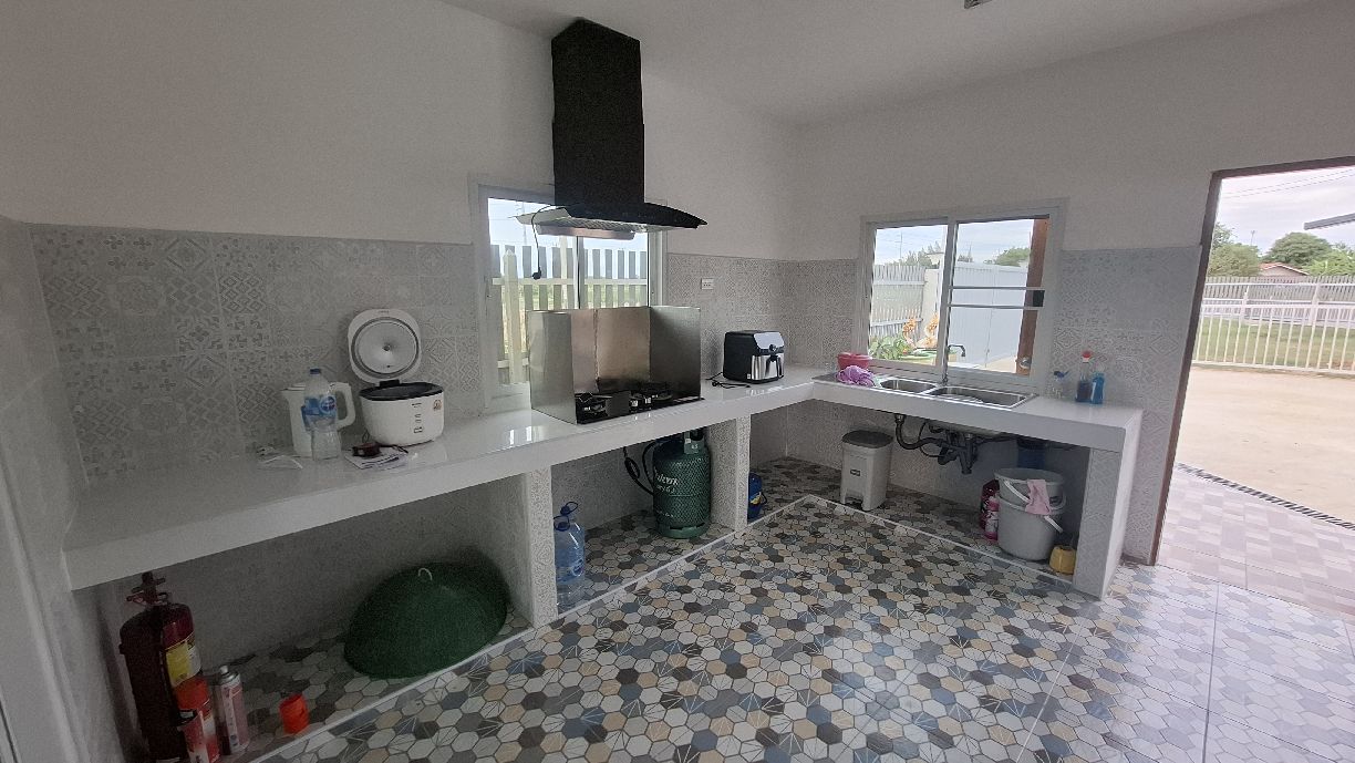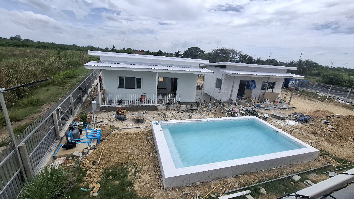 Mittlerweile (15.06.2025) sind die Gästehäuser fertig, abgenommen und bezahlt. Die Wasserversorgung dieser wird durch einen 2000 Liter Pufferspeicher mit Konstant Druckpumpe gesichert. Nachträglich bekommt jedes Gästehaus noch 2 Klimaanlagen, 1 Duschtrennwand und einen Wlan-Router. Die Inneneinrichtung wird Anfang nächsten Monats ausgesucht und geliefert, sobald alle Fliesenlegerarbeiten auf dem Gelände abgeschlossen sind.